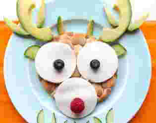 Minismørbrød med topping av tomat, agurk eller blåbær