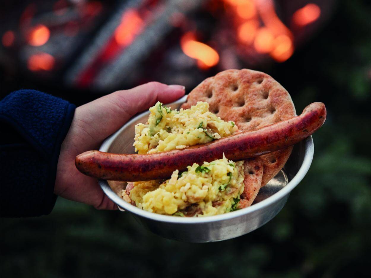 Ingenting smaker bedre enn grillede pølser og en smaksrik potetmos når man er ute på tur.