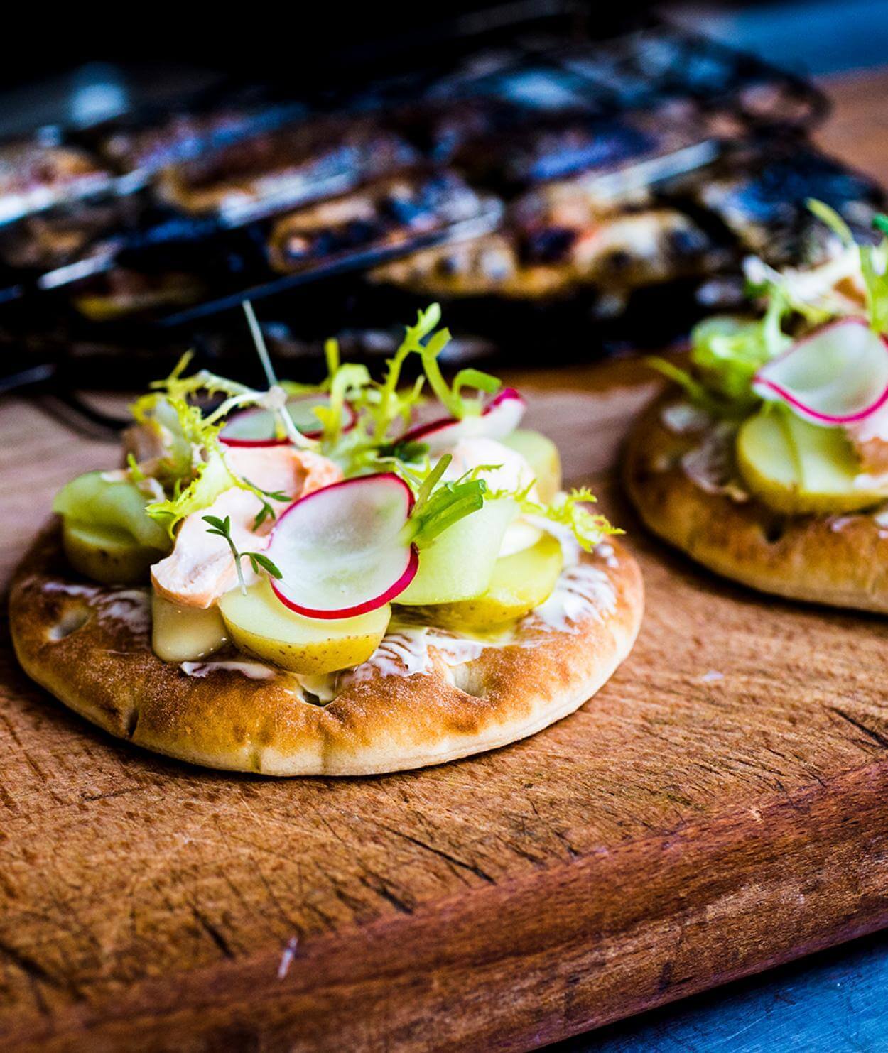- Forsett deretter med poteter, reddiker og sylteagurk.