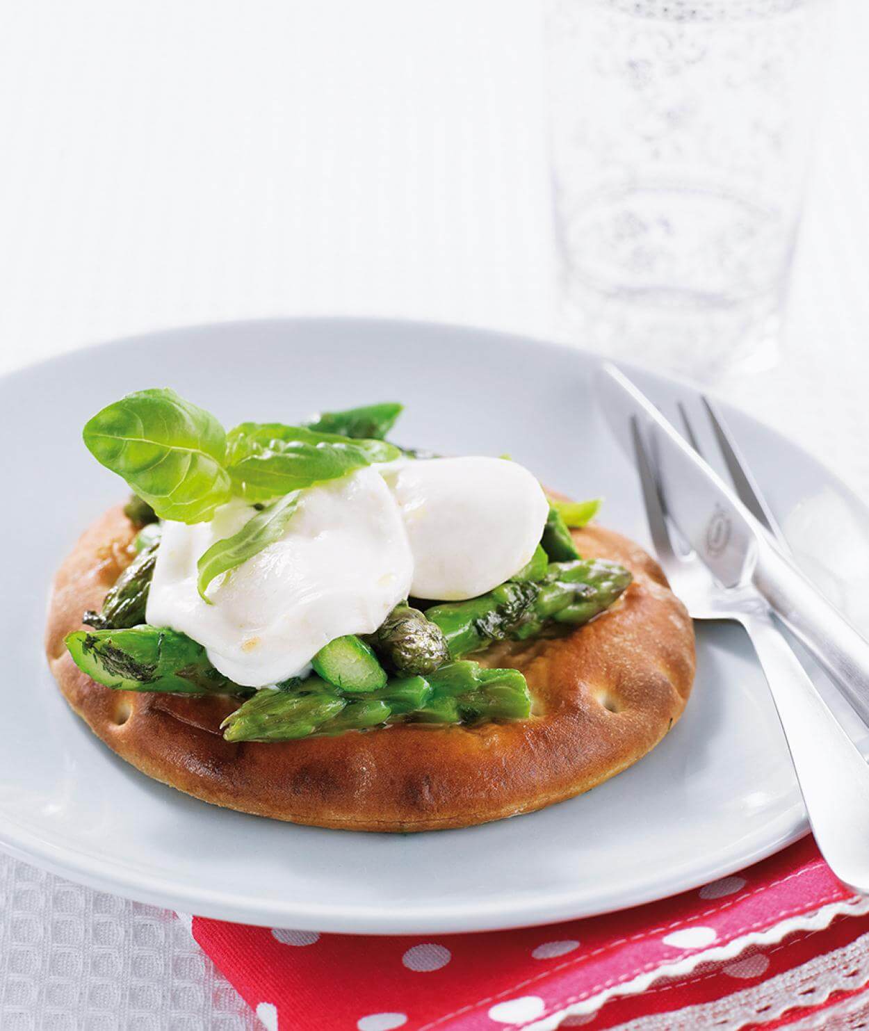 - Del mozzarellaen. Legg aspargesblandingen og osten.