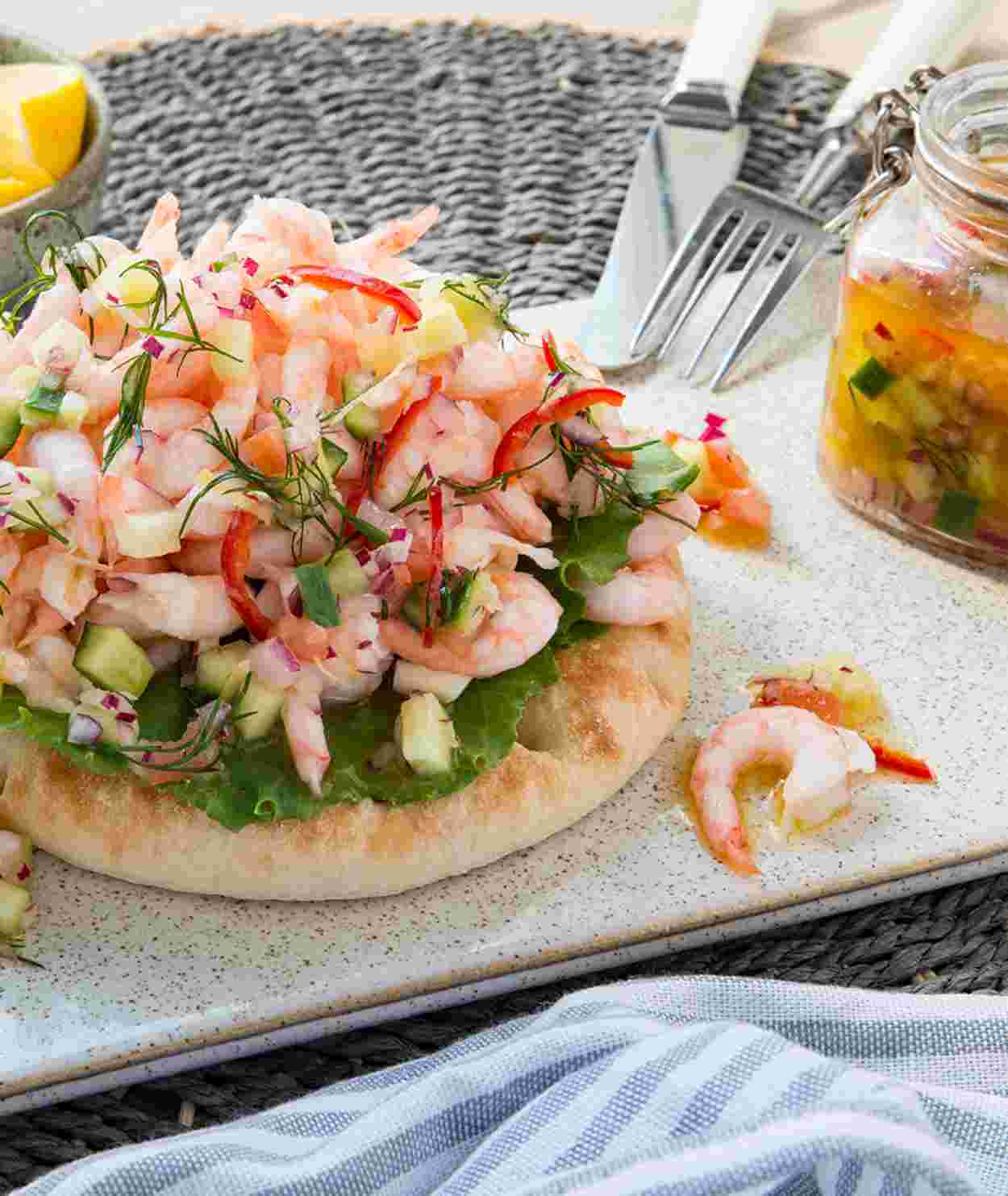- Topp rekesmørbrødet med rikelig grønnsalsa, server gjerne resten av salsaen i en skål ved siden av.