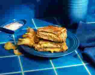 Grillet vegetarisk smørbrød med fetaost og soltørkede tomater.