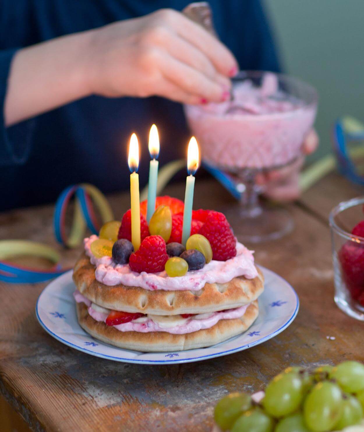 Tips! La barna lage sine egne smørbrød eller mini smørbrødkaker i bursdagsselskapet. Sett frem små skåler med bær og frukt som er skåret i skiver. Lag gjerne kremostblandinger med ulike bær så det blir variasjoner på farger og smaker. Ekstra morsomt blir det om man legger frem noen pepperkakeformer så barna kan lage sine egne figurer av brødet.