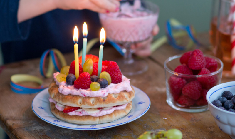 Tips! La barna lage sine egne smørbrød eller mini smørbrødkaker i bursdagsselskapet. Sett frem små skåler med bær og frukt som er skåret i skiver. Lag gjerne kremostblandinger med ulike bær så det blir variasjoner på farger og smaker. Ekstra morsomt blir det om man legger frem noen pepperkakeformer så barna kan lage sine egne figurer av brødet.