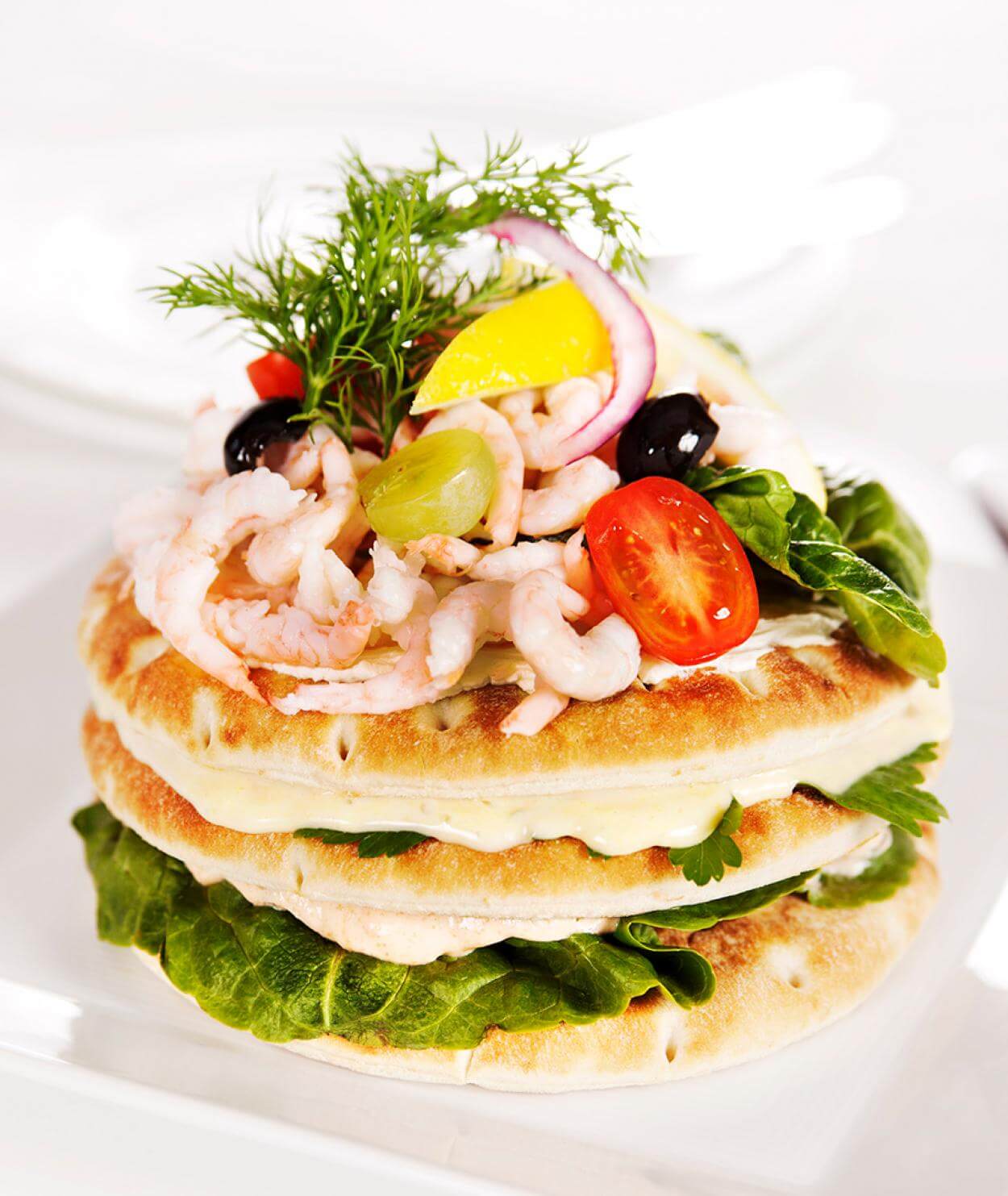 - Legg Polarbröd, salatblader og sitron lagvis, på den øverste skiven legges det ekstra godt med sitronkrem.