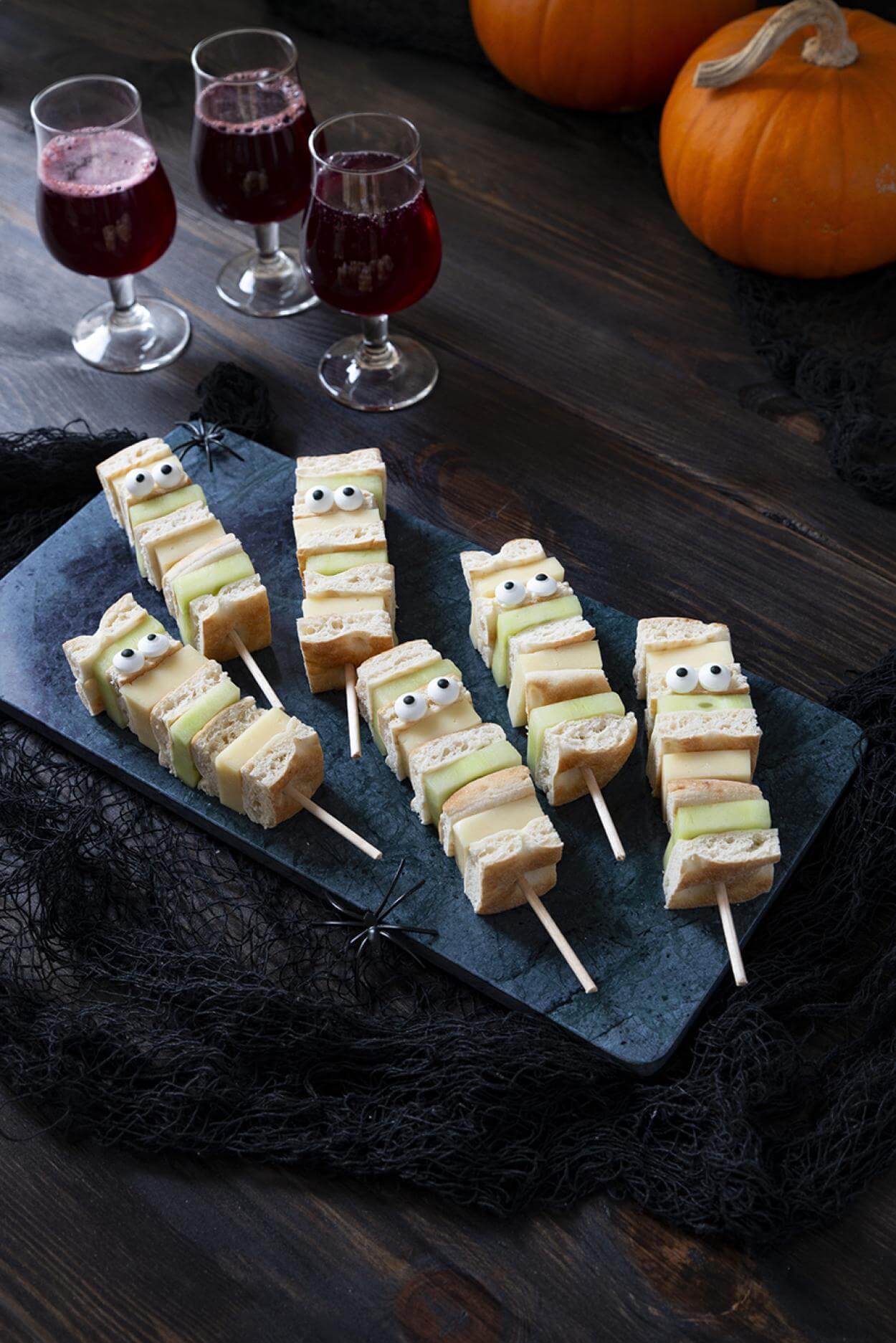 - Tips! Du kan bruke smør eller kremost som øye og skjære et stykke agurkskall som pupille istedenfor sukkerøyne!