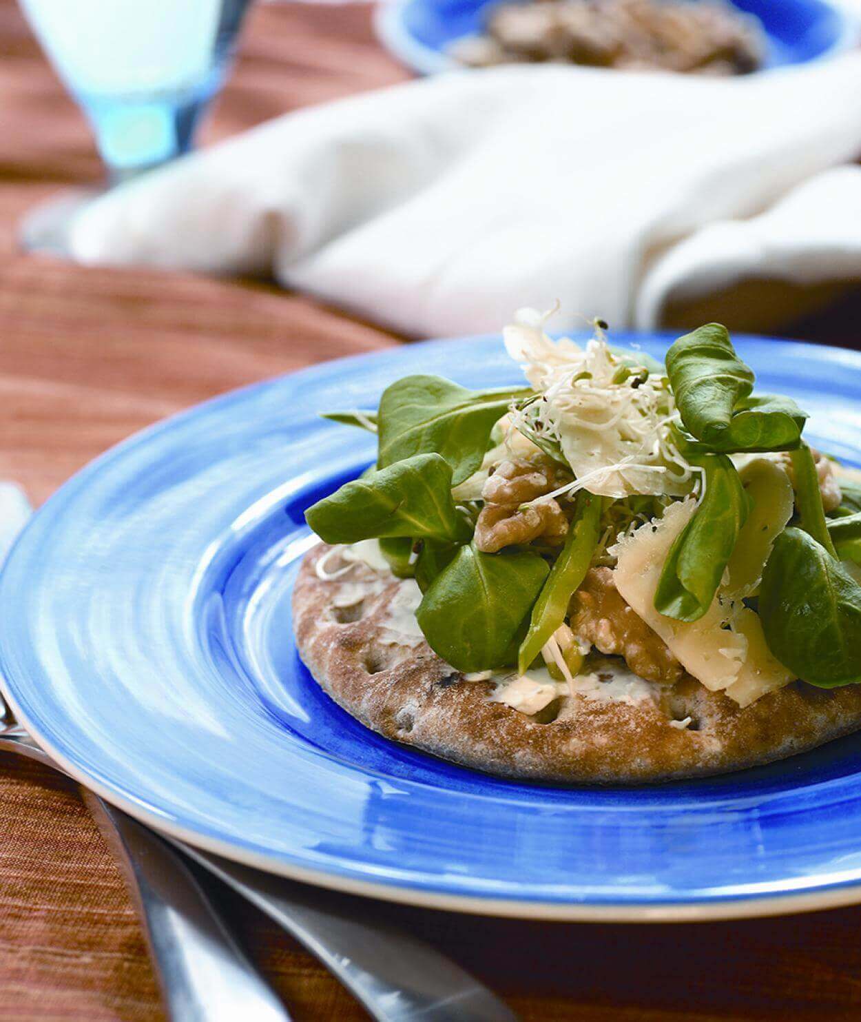 - Drypp noen dråper sitronjuice over. Avslutt med ost og valnøtter.
