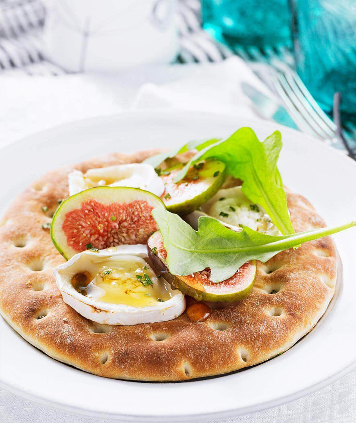 - Del opp fiken og ost, legg dette på brødet. Dryss med rosmarin og pepper, drypp så litt honning over.