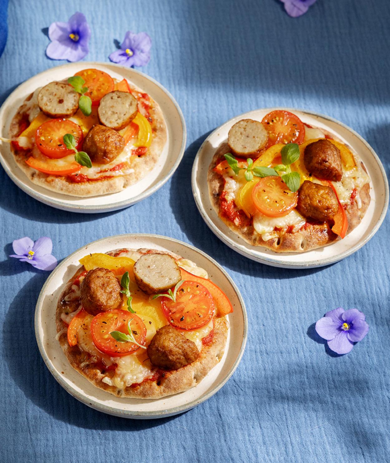 - Smør tomatsaus på brødet. Dryss over oregano, legg på ost (halve mengden) og paprikaskivene.