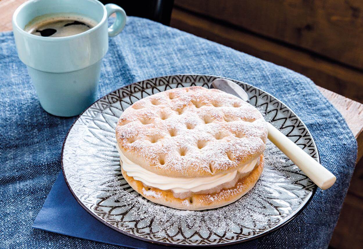 - Legg på den andre brødskiven og dryss over et tynt lag med melis før servering.
