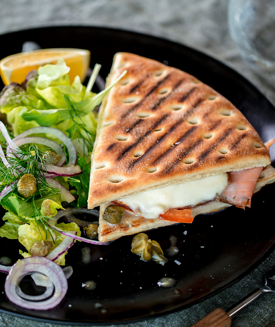 Sandwich med røkelaks, kapers og mozzarella