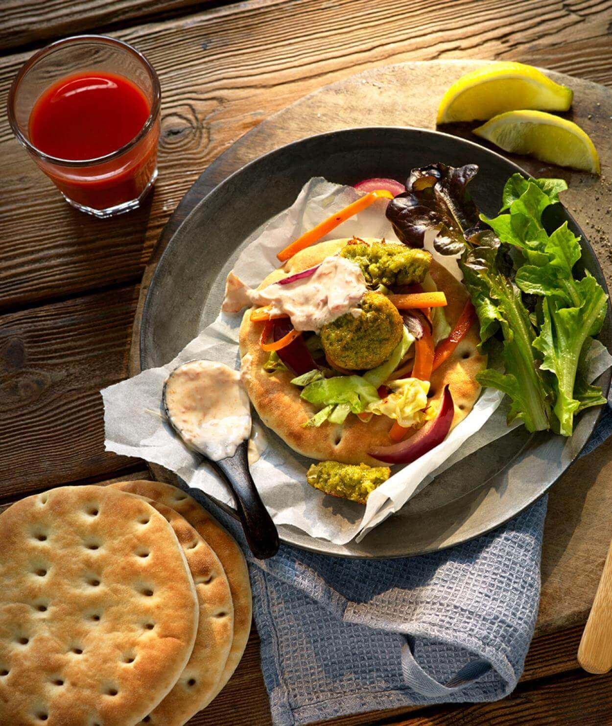 - Falafelblandningen legges på Polarbrød Hvete, avslutt med litt saus!