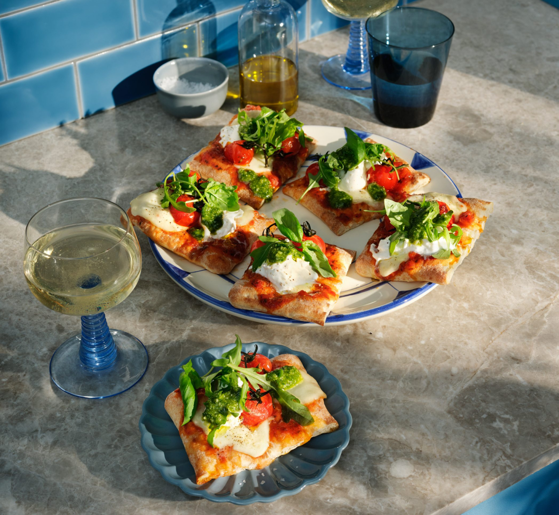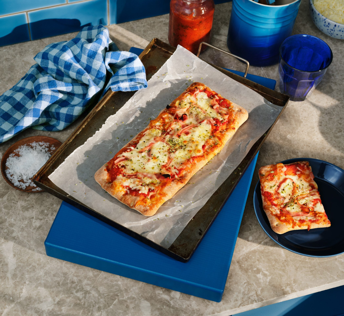 En enkel og god pinsa. Server som en enkel pinsa eller del den opp i porsjonsbiter.