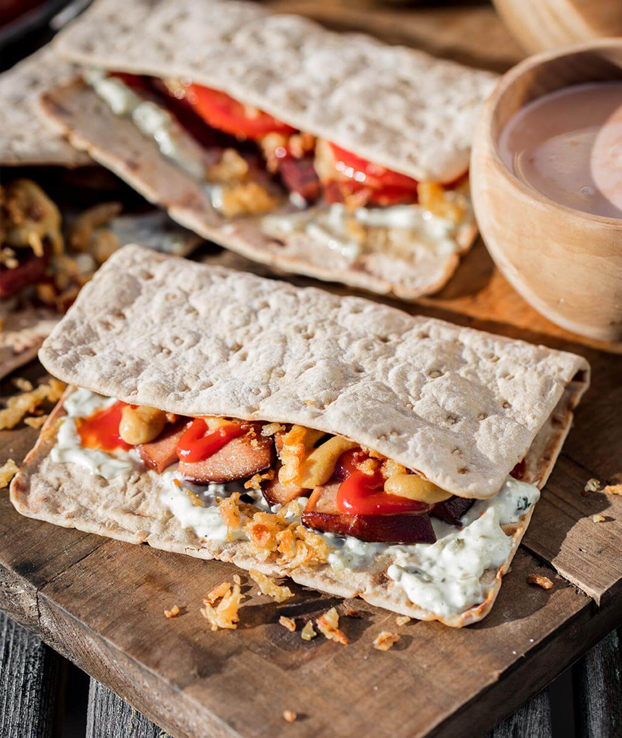 Om du grillar falukorven på kolgrill så får mackorna en härlig smak, som passar perfekt för den hungrige äventyraren.