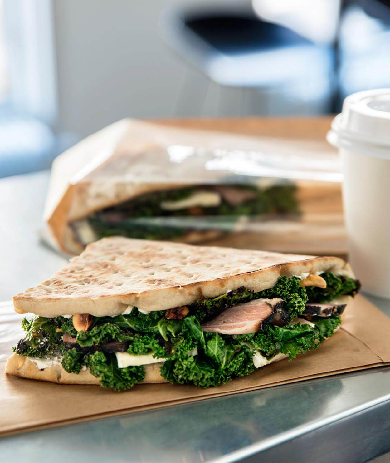 - Lägg på grönkål, brieost och nötter på ena halvan av mackan och vik ihop och njut.