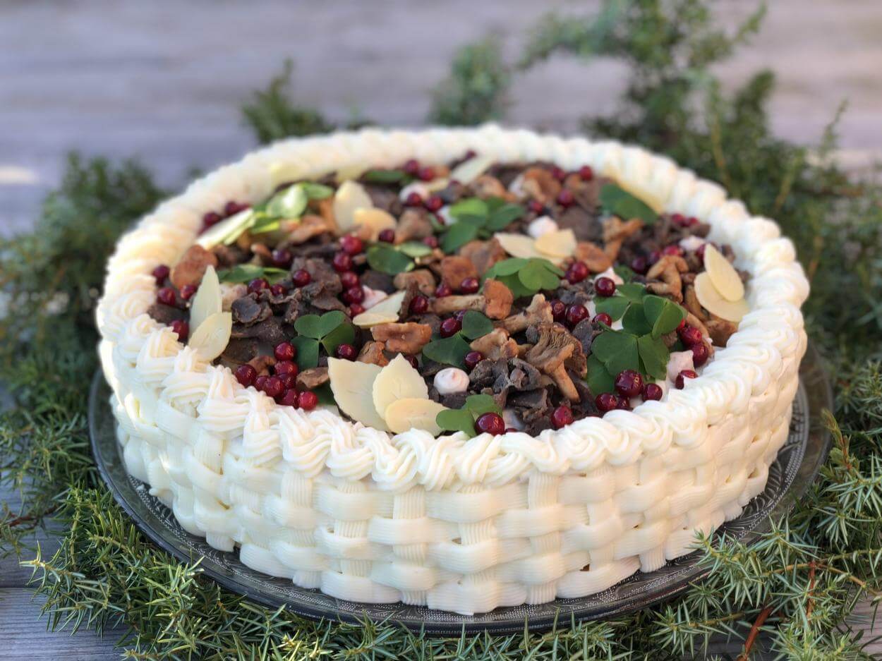 - Dekoreringen av tårtan är enkel att anpassa efter egen förmåga och tid. Spritsa gärna ett korgmönster med mjukost på sidorna, men det går lika bra att bara spackla dem med lite creme fraiche eller mjukost eller helt lämna kanterna på tårtan utan dekoration och bara dekorera uppe på tårtan.