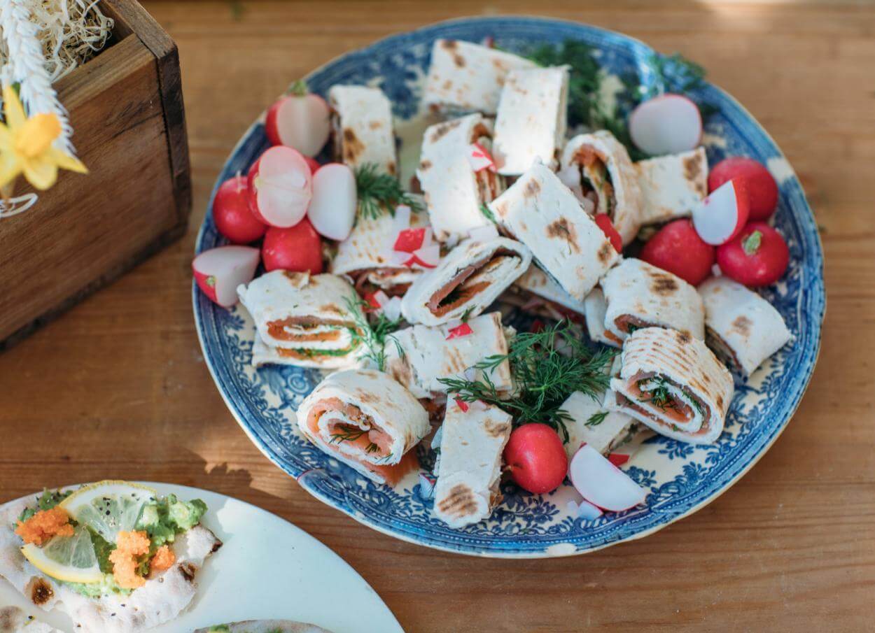 - Avsluta med fint hackad rädisa. Rulla ihop och skär i snittar.