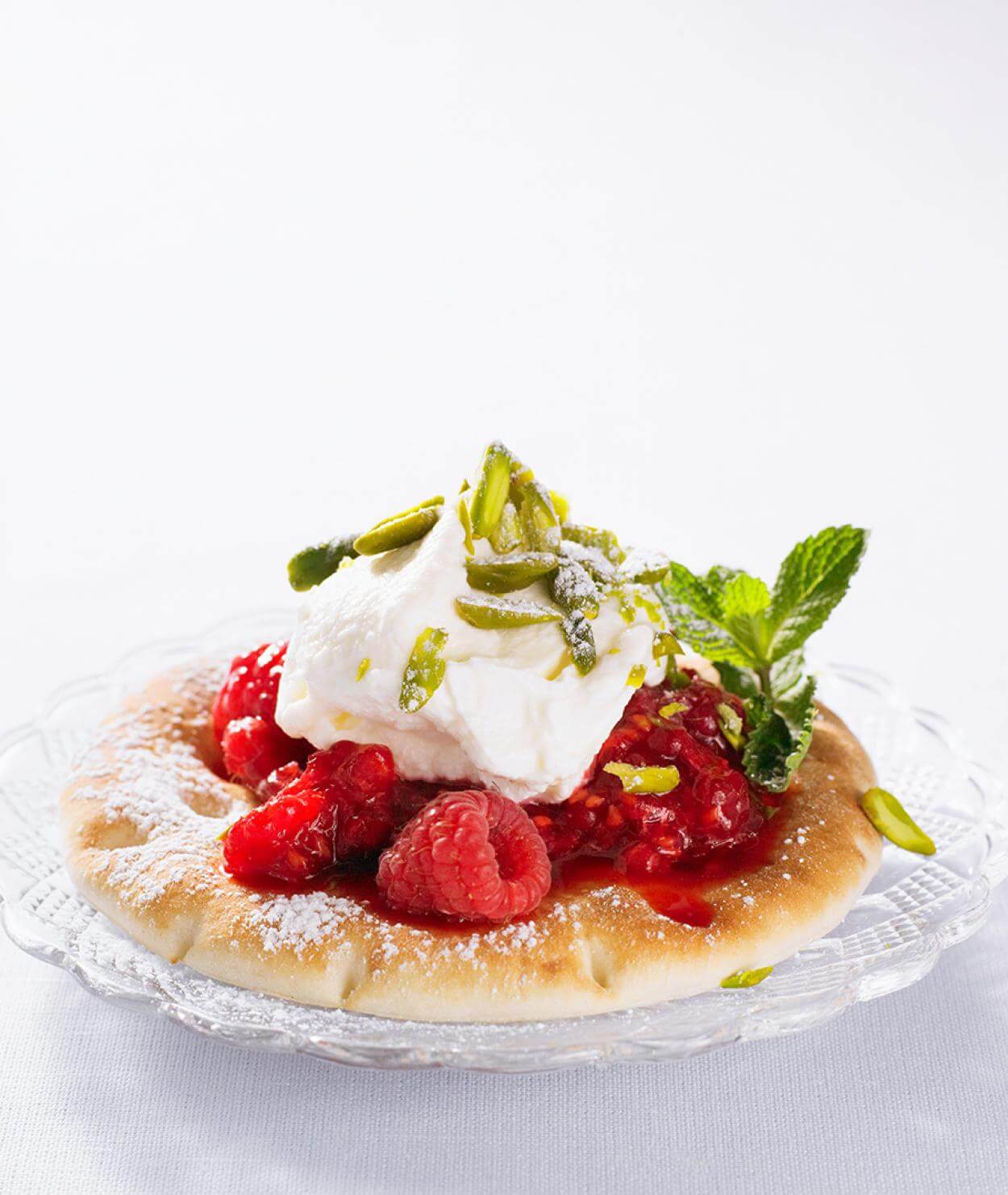 - Rosta bröden och toppa med rårörda hallon samt yoghurt.