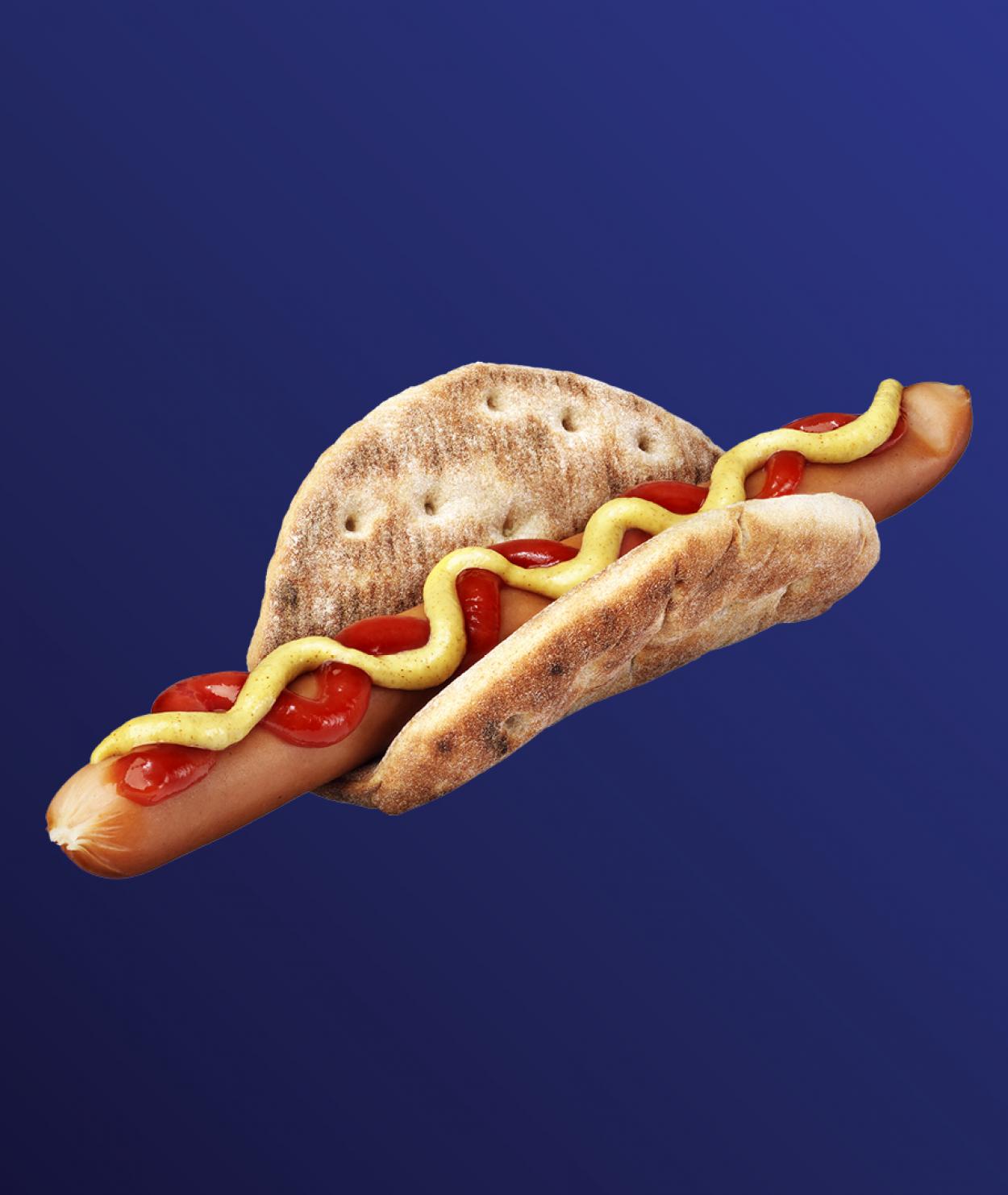 Polarbröd passar perfekt som korvbröd! Tips: tumma lite i mitten på brödet så går det enklare att vika, eller värm någon sekund i mikrovågsugnen.