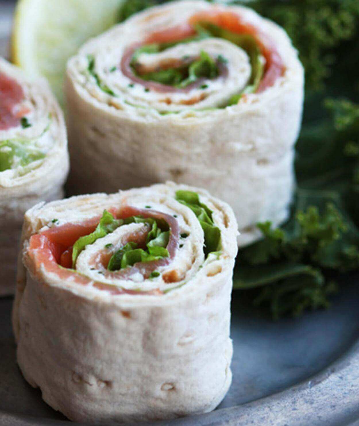 - Rulla ihop brödet från sidan med fyllning så fäster färskosten bra på slutet.