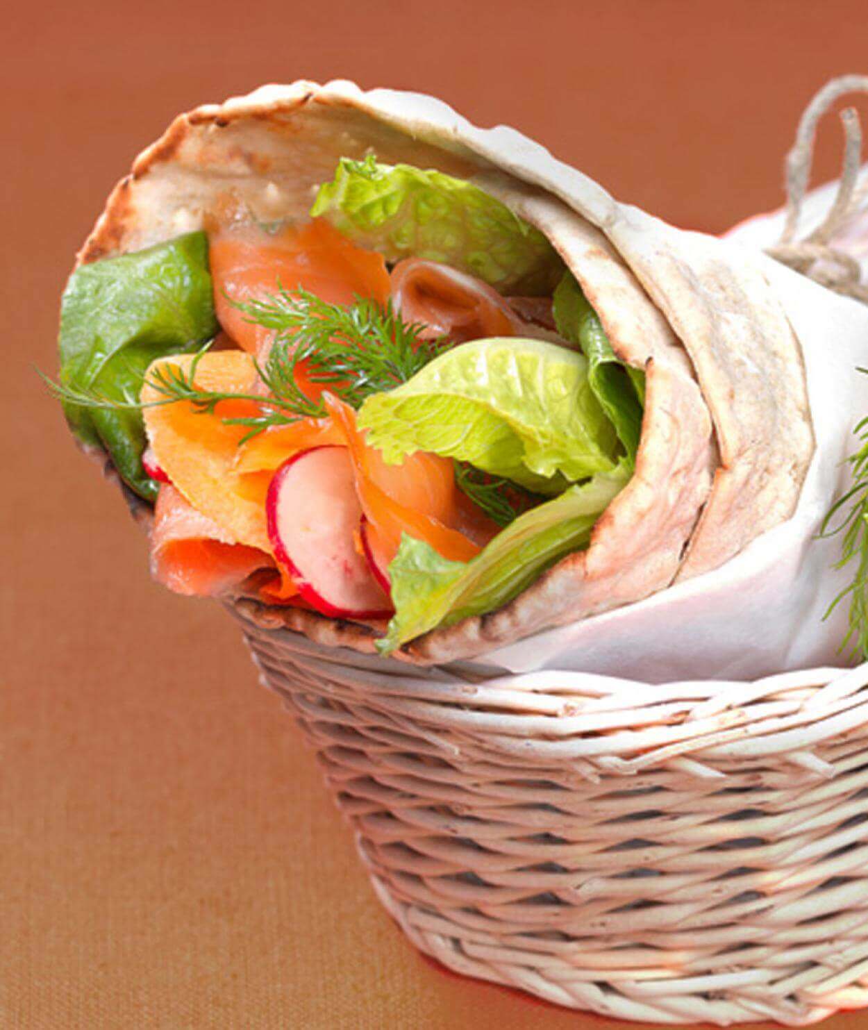- Toppa med gurk- och morotslängderna, rädisor och dillkvistar.