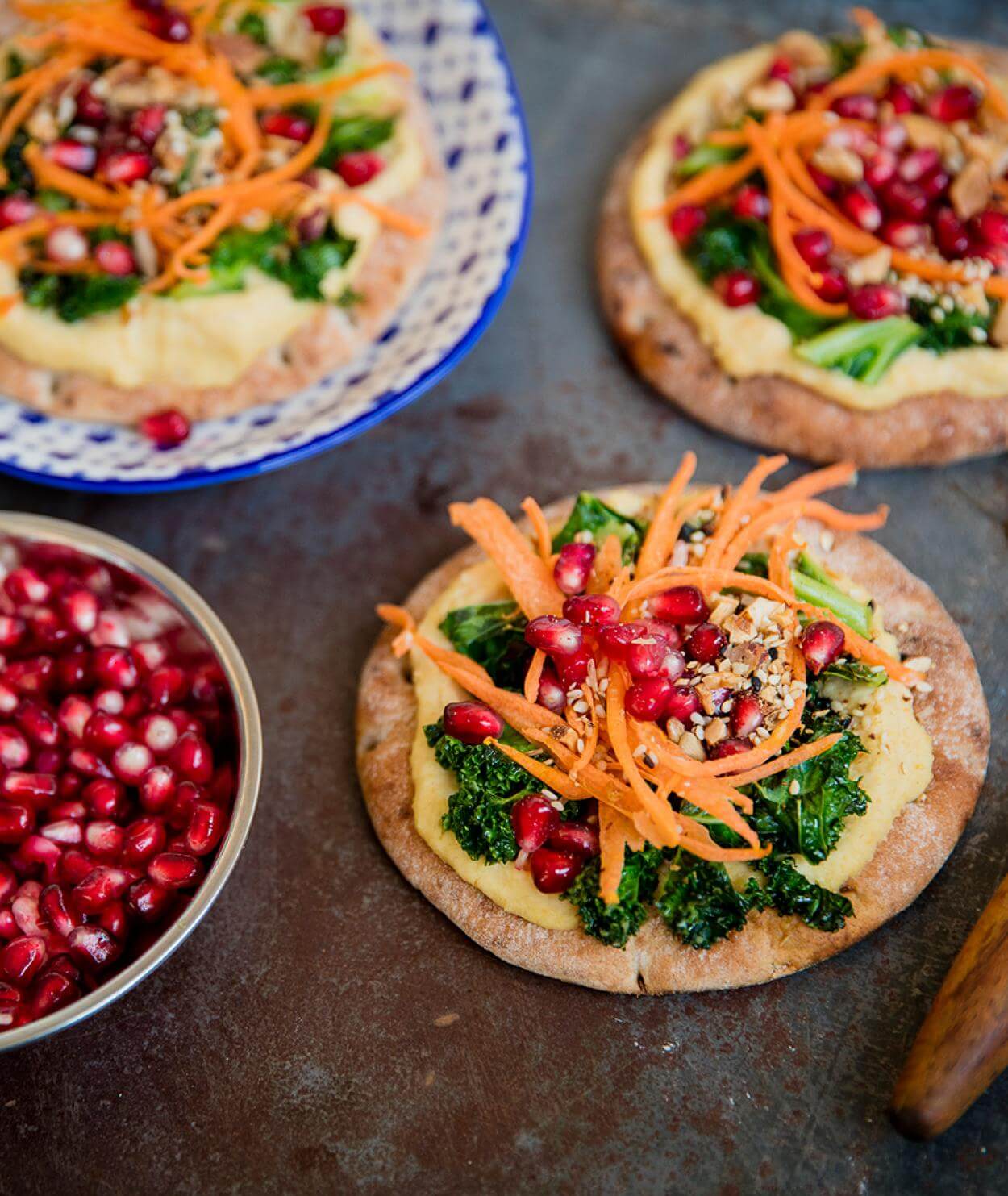 - Toppa med rostad mandel eller dukkah och granatäpple.