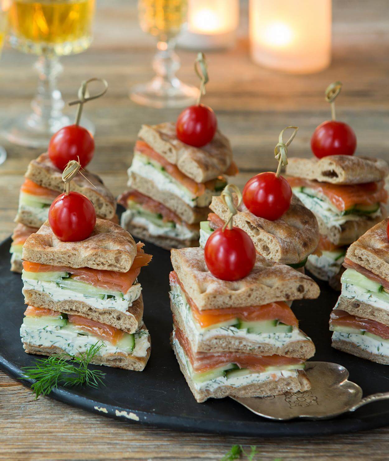 - Skiva gurkan och fördela den och den rökta laxen ovanpå färskosten.