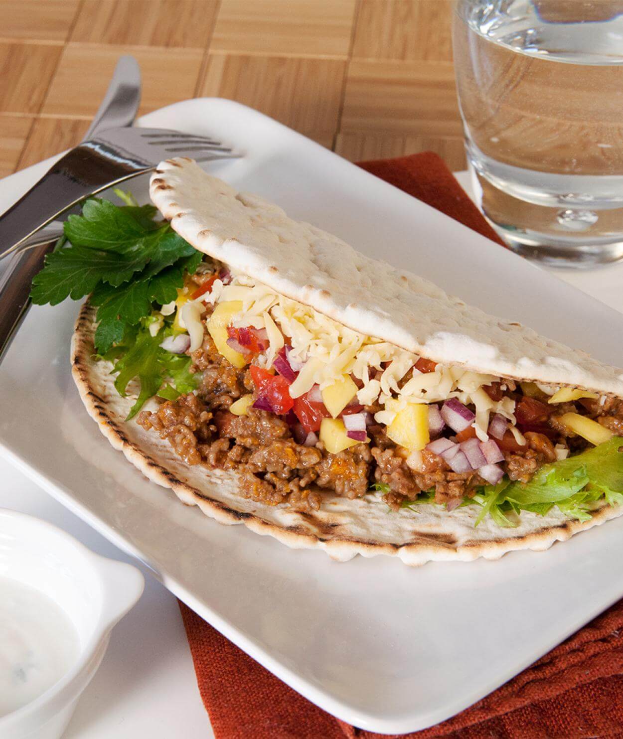 - Fyll bröden med köttfärsröran, lägg på hackade tomater, riven ost, ruccola och toppa med en klick dressing.