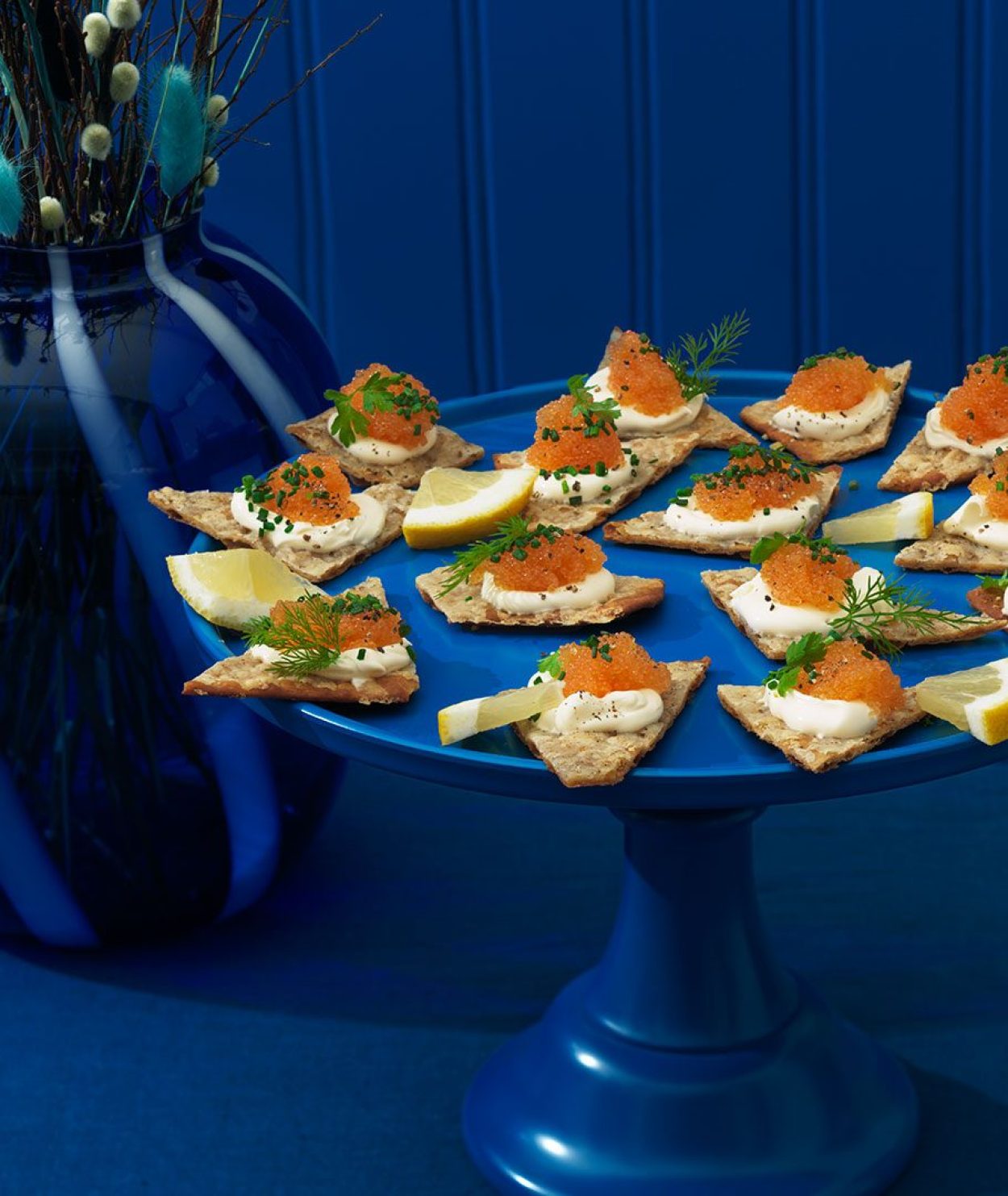 Ostgratinerat tunnbröd med löjrom, dill och gräslök