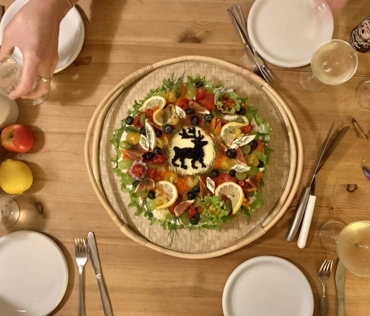 - Garnera med creme fraiche, majonnäs eller vad annat som blev över från rörorna. Till dekoration; sallad, tomat, blåbär, fikon, citron, dill, rödlök, tångrom eller vad helst ditt hjärta önskar. Dekorera efter humör!