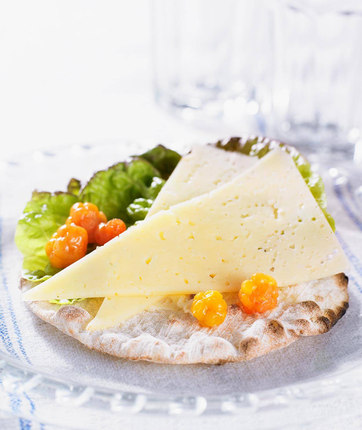 - Lägg ett par skivor vällagrad Västerbottensost på en skiva Polarknäcke.