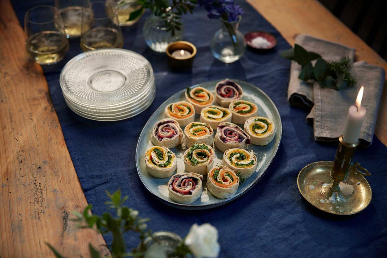 - Blanda färskosten med valfri smaksättning och bred på Sarekbröden. Lägg på de picklade grönsakerna och sist grönkålen. Rulla ihop och snitta.