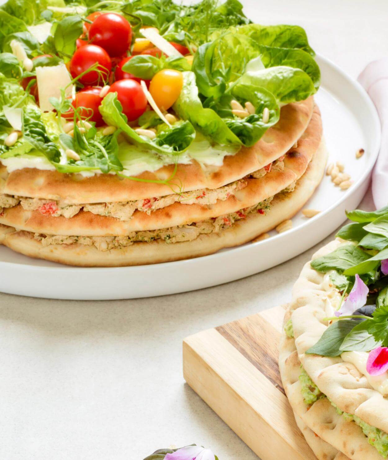 Om du gillar caesarsallad kommer du att älska denna smörgåstårta med kyckling, parmesan och grönsaker!