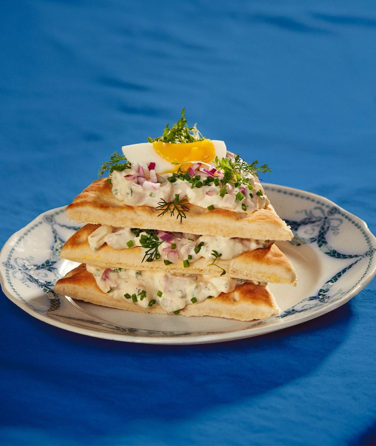 - Toppa sedan med ägg, lite dill, gräslök och rödlök.