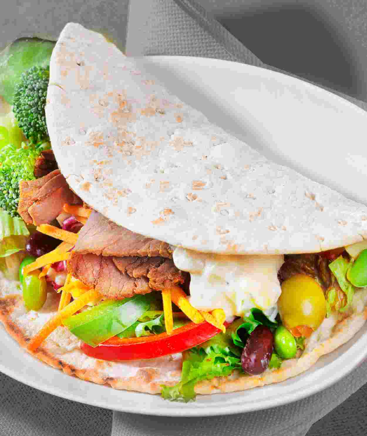 - Fyll brödet med favoriterna från salladsbaren, klicka över potatissallad eller valfri dressing, t ex smaksatt crème fraiche, och vik ihop. Mer mättande än sallad och mycket godare!