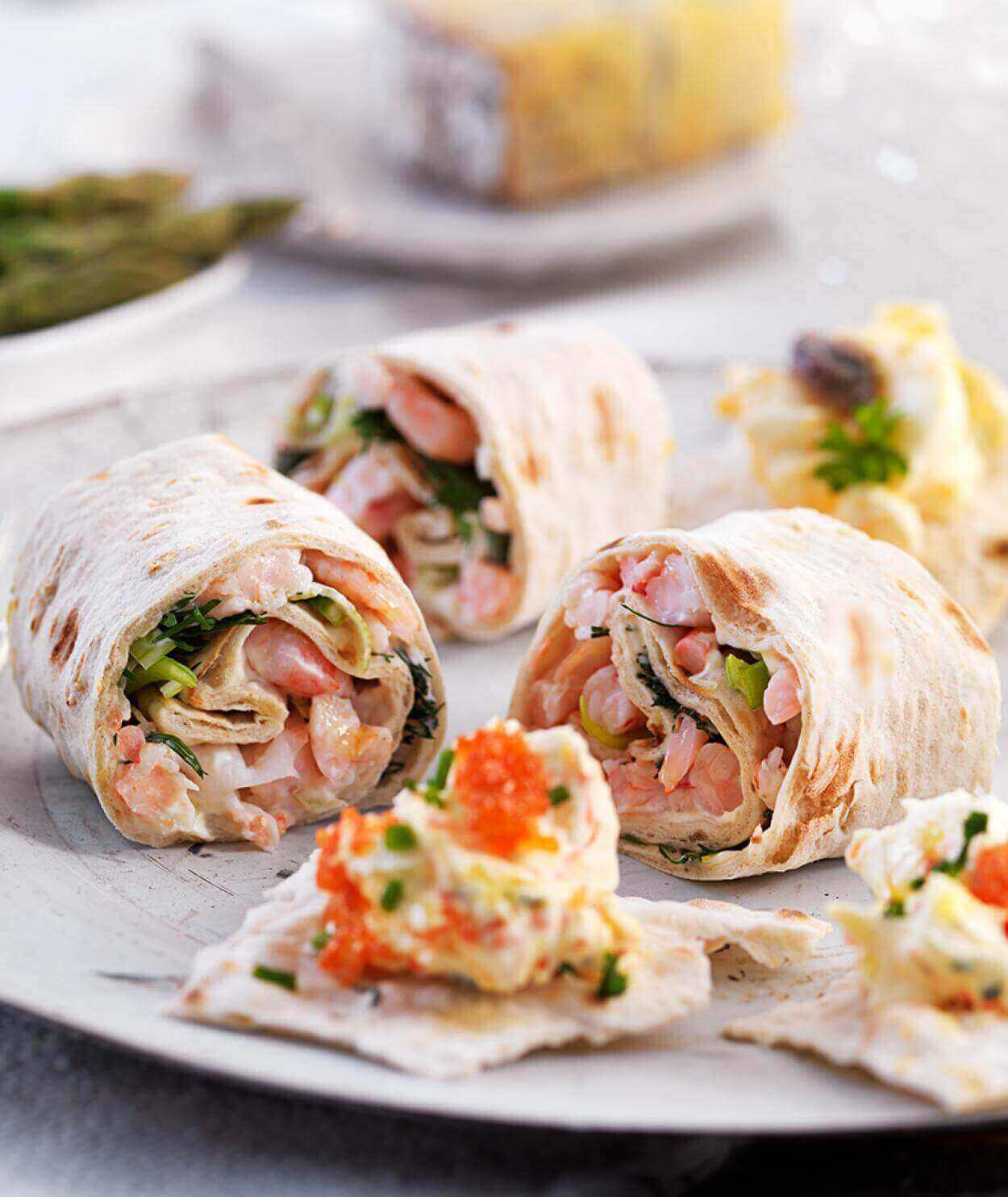 - Bred ut röran på brödskivorna, rulla ihop och skär fina snittar.