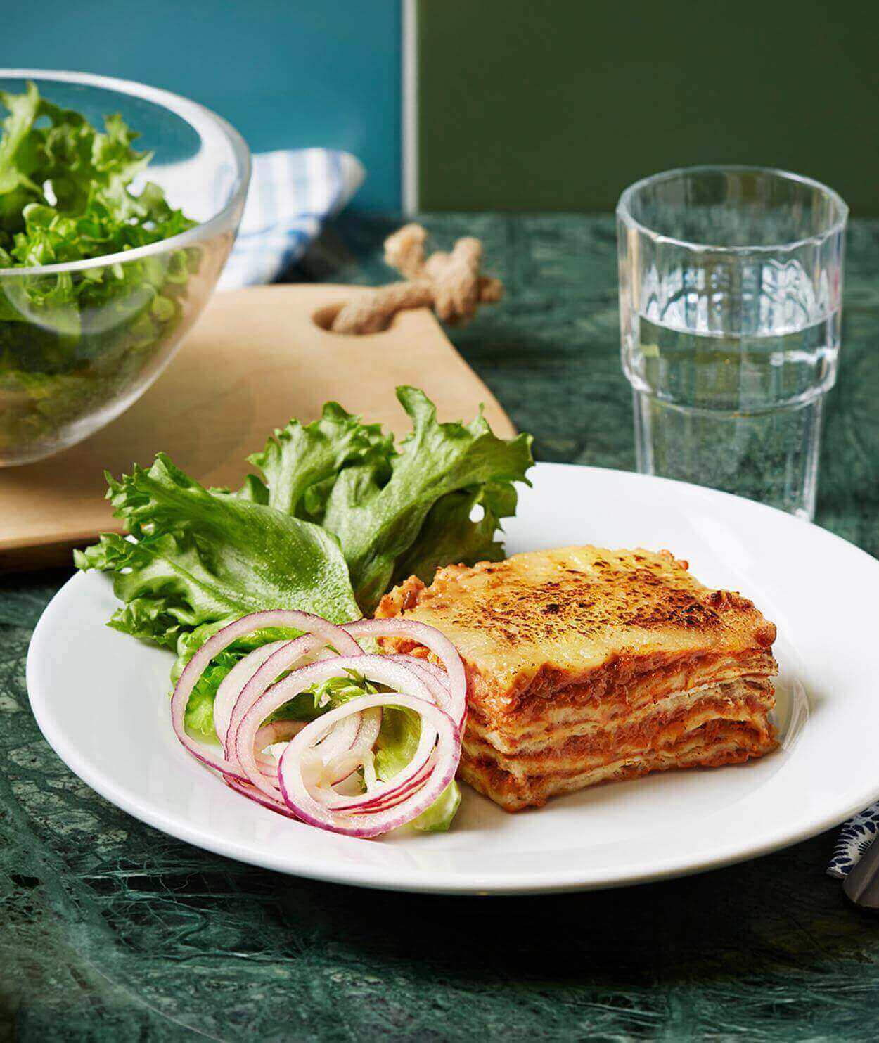 Det här receptet är framtaget i samarbete med Universitetsholmens gymnasium i Malmö som har testat fram en vegetarisk lasagne som gillas av både elever och vuxna. Receptet är gjort med Polarbröds mjuka tunnbröd istället för lasagneplattor. Blir verkligen gott och går snabbt att tillaga i ugnen. Lagom till en form som har ungefär samma mått som en tunnbrödsskiva.