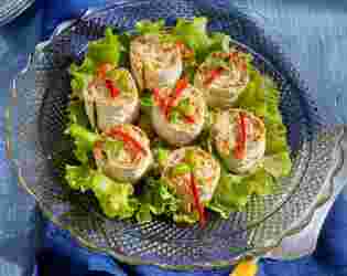 Miniwrap med chilimarinerade räkor, avokado och dillmajonnäs