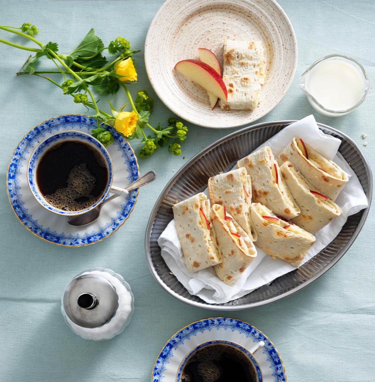 - Skiva äpplet fint och fördela över brödet.