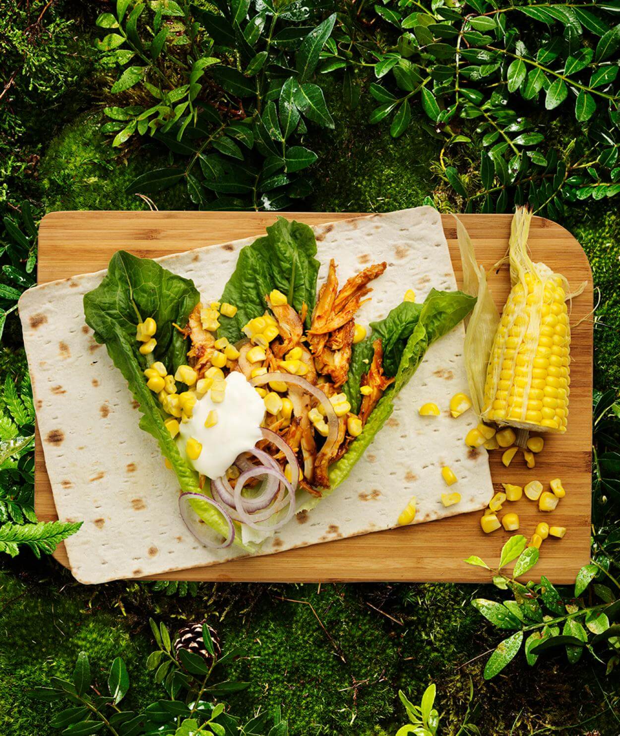 Wrap med äppelkyckling – serveras med ugnsbakad majs